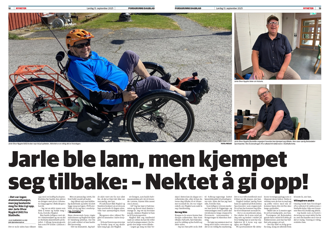 På forespørsel mot et avtalt honorar avholder jeg mitt foredrag: FRA RULLESTOL TIL RIDDERRENN